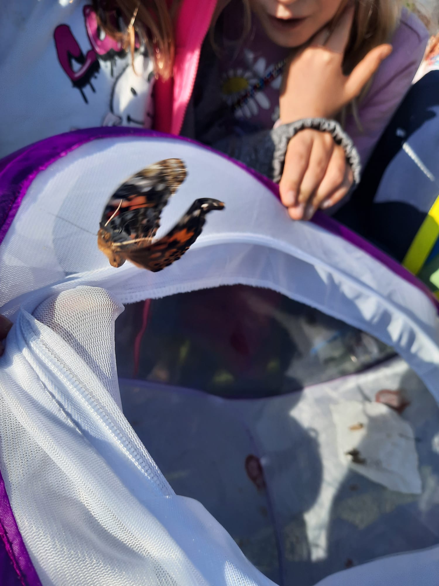 Klasse 3 ist mit einem Schmetterlingsprojekt in das neue Schuljahr gestartet. Im Klassenraum konnten wir erleben, wie sich die winzigen Raupen des Distelfalters erst zu großen, dicken Raupen entwickelten. Nach einigen Tagen beobachteten wir die Verpuppung und wieder einige Tage später schlüpften die Schmetterlinge aus der starren Puppenhaut. Die Distelfalter haben wir im Garten des Elbmarschenhauses fliegen lassen. Da wir nun gut Bescheid wissen, sind wir sicher, dass sie dort Nahrung und Artgenossen finden werden.